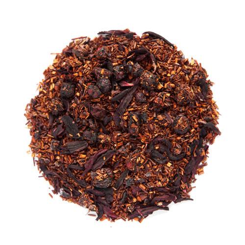 Blueberry Rooibos is an organic, sweet-tart, antioxidant-rich, caffeine-free infusion. Its deep, cedar- and burgundy-colored leaves are peppered with blueberries, schizandra berries and hibiscus. The garnet colored brew has a tangy-sweet, tart, berry-filled aroma and flavor, with abundant notes of blueberry and a gentle earthy undertone. The tartness of this rooibos blend makes it even better when it's honey-sweetened and iced.