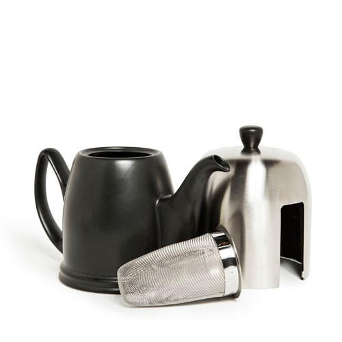 Form meets function in black porcelain and chrome. No wonder these French modern teapots by Guy Degrenne are a customer favorite! This classically shaped teapot is our most traditionally European option. Lift the chrome lid to reveal a felt cozy under layer on its interior - perfect for keeping your tea hotter, longer. Inside the pot is a deep, tightly woven stainless steel wire infuser basket with a sturdy, stationary handle. The Salam Teapots are available in four sizes: 2 cups, 4 cups, 6 cups and 8 cups.