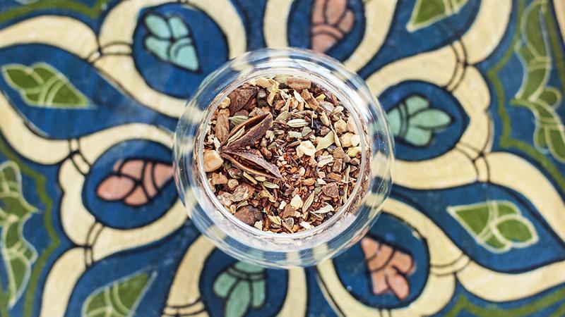 INGREDIENTSOrganic cloves, Organic peppermint, Organic red rooibos, Organic cinnamon, Organic ginger root, Organic cardamom, Organic ramón nut, Organic star anise, Organic licorice root, Organic fennel seed, Organic black pepper