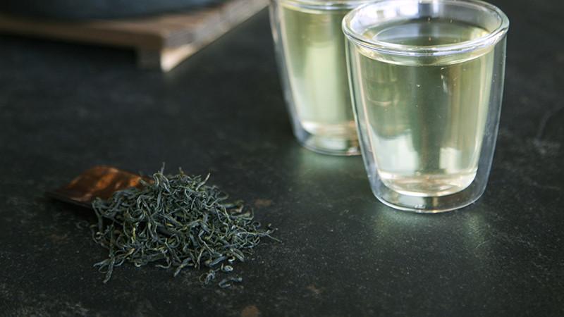 This very rare, extraordinary tea has a long history in Hubei, China and is thought to be a precursor to Japanese sencha teas, due to a light steaming and hand rolling on heated tables that the leaves undergo to keep them green. This Pre- Ming tea from the Xuan En region , is a descendant from the original "Jade Dew" and is sometimes called "Lu Zhen" or Green Needles, referring to the propensity of buds. First, observe the intense sweetness of the aroma. It's fresh and earthy, with a light chocolatey note. When brewed, it has a distinct winter melon note. The liquor is velvety and savory sweet, with a vegetal, creamy finish, like baked zucchini. Upon second a steeping, you notice a hint of tarragon. Truly a heritage tea for the tea connoisseur.