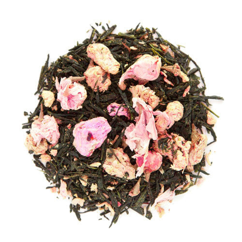 SPRING 2015 HARVEST -- This tea blends exquisite, rare, shade-grown kabuse green tea from southern Japan with the Spring season's sakura (cherry) blossoms, creating a classic and refined green tea. Hand plucked, antioxidant-laden, tender jade leaves are neatly trimmed leaving only the freshest and most vibrant tips. The scattered whole and broken cherry blossoms lighten the look of the tea, and are a welcome addition to the deep color of the tea leaves. The resulting brew is a lightly vegetal broth of a deep green, with a umami richness. The aroma is bright and delicately sweet, but mellows out after an initial taste of your cup. The flavor is pure Spring, like flower nectar, with the singular flavor of fruity and floral cherry. Steep a second time for less cherry sweetness and a more grassy, steamed butter lettuce note.