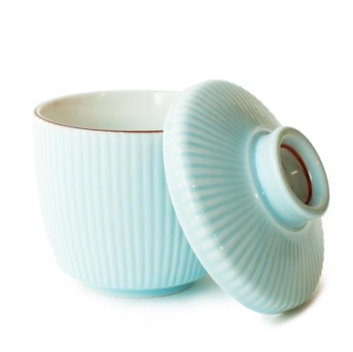 This lovely ribbed blue Chawan-Mushi cup is the perfect way to keep your tea covered and warm.  Classically used for a Japanese steamed egg custard dish, Chawan-Mushi, this cup is the perfect size and shape to hold your favorite brew.