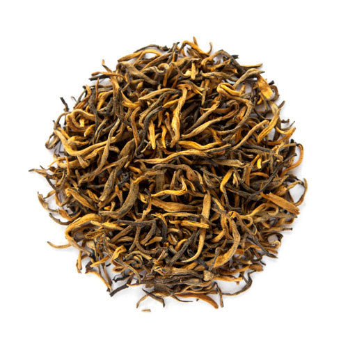 High-altitude-grown Golden Needle Yunnan is considered to be one of the finest teas in the world. Ours is completely composed of big, downy, almost fluffy leaves in strawberry blond, copper and French grey. The delightful dry leaf aroma is woody and lightly floral, with a hint of chocolate. The brew's deep caramel color hints at its bold aromas of drying tobacco, wildflower honey and blond woods. Its honey-sweet flavor is full-bodied, round and brimming with smooth notes of apple blossoms, apricots, buttery, baked yams and chocolate. The long-lasting aftertaste has exquisite notes of tobacco and bittersweet chocolate. Like any true "self drinker," this lusciously rich, fantastically nuanced tea is at its pinnacle when drunk without milk or sugar. It is a personal favorite of American Tea Room's founder, and one of our store's best-selling teas.